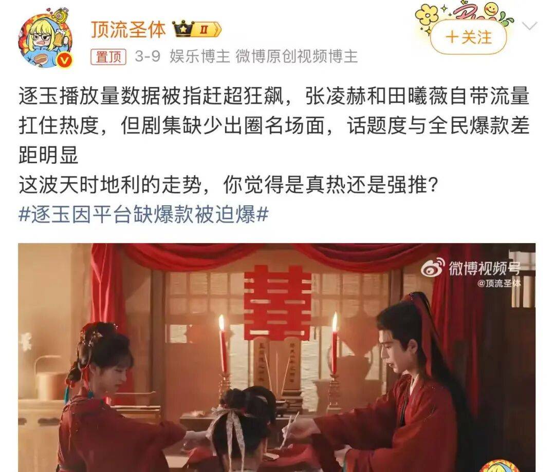 “声称大爆剧、实则大瀑剧”的吐槽声扩散开来,3月9日,“网友举报逐玉收视率造假”冲上热搜。