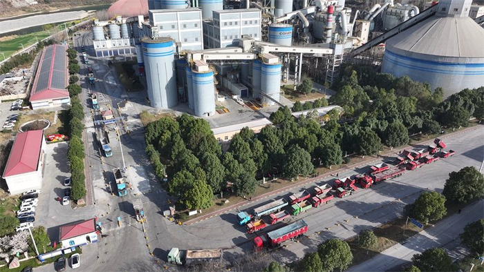 前往广元海螺水泥有限责任公司运输水泥的车辆有序排队。朝天区融媒体中心供图