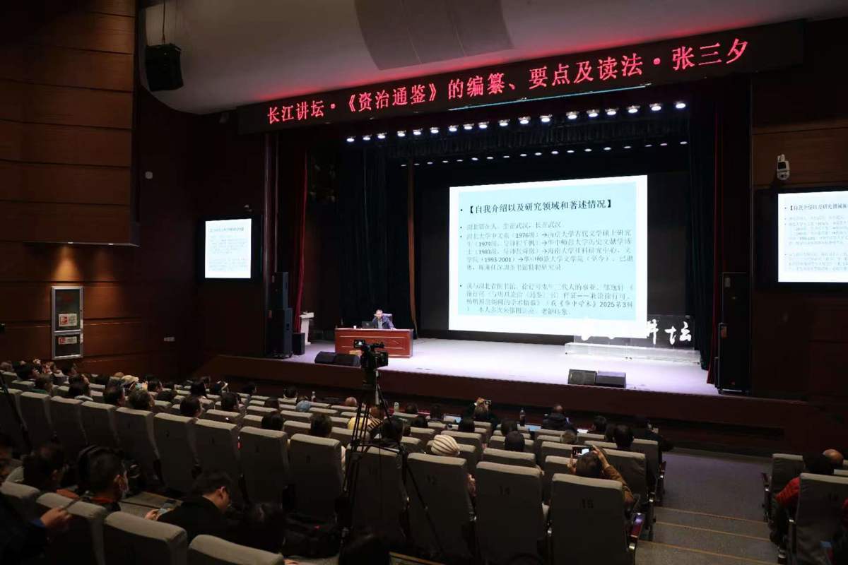 2月28日,华中师范大学文学院教授、博士生导师、深圳图书馆特聘研究员张三夕做客长江讲坛“马年第一课”,以《的编撰、要点及读法》为题,带领现场读者穿越千年历史长河,领略这部史学巨著的深邃智慧与当代价值。