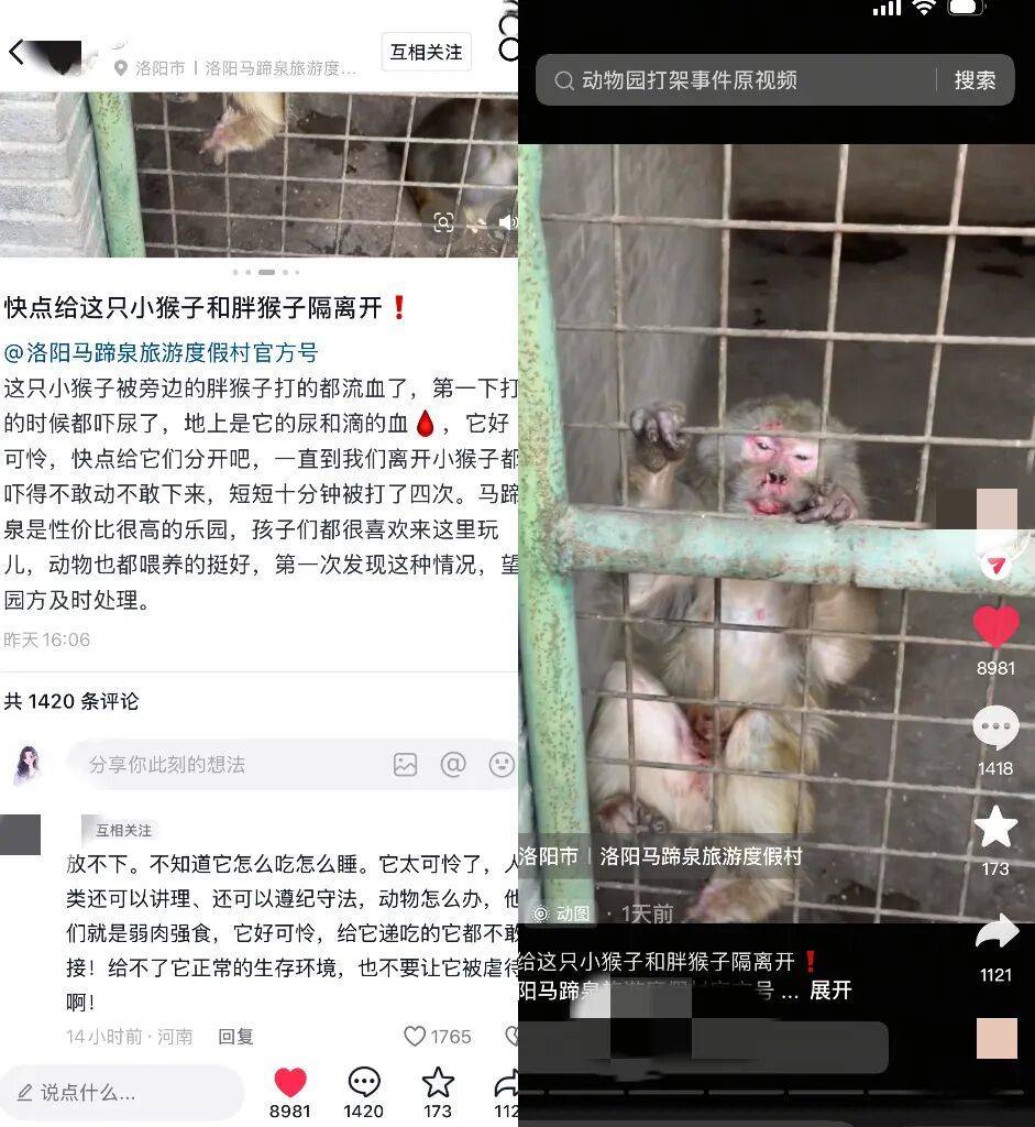 2月1日,一段拍摄于洛阳马蹄泉旅游度假村内“猴子打架出血”的视频在网络引发关注。