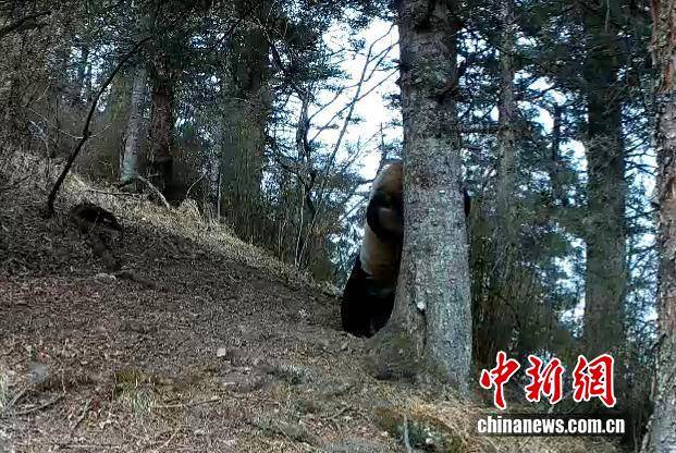 近日,在四川平武的红外相机捕捉到野生大熊猫表演“倒立”绝技。