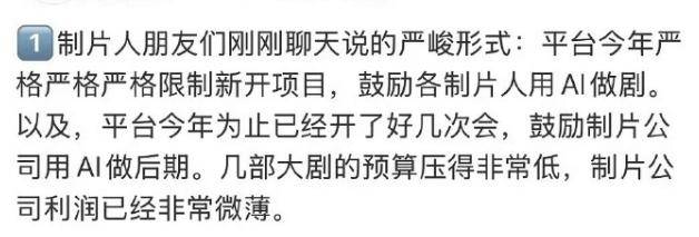 影视公司现在很鼓励多用AI,他们这几年的生存也不容易,会抓住一切可以降低…