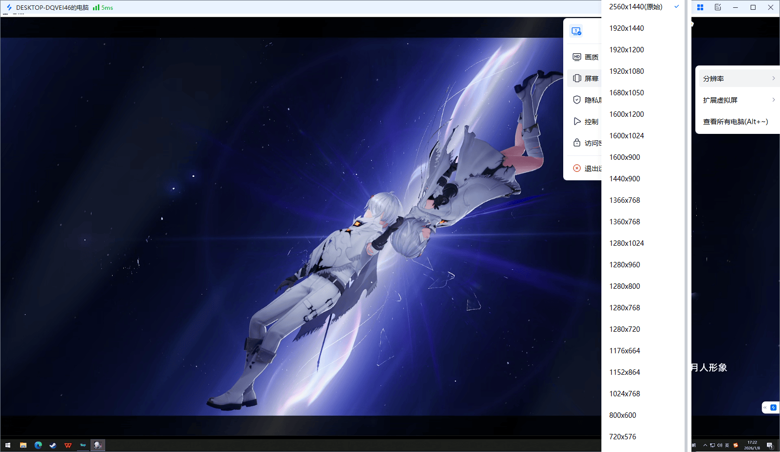 在电脑端的远程控制界面,找到右上角的工具栏并点击,选择屏幕相关的设置选项,就能看到分辨率调节列表。