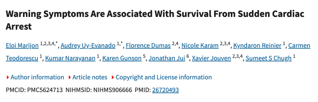 2016《内科学年鉴》刊发的一篇文章,首次大规模证实心脏骤停前存在可识别的预警症状,打破了“猝死毫无征兆”的传统认知。