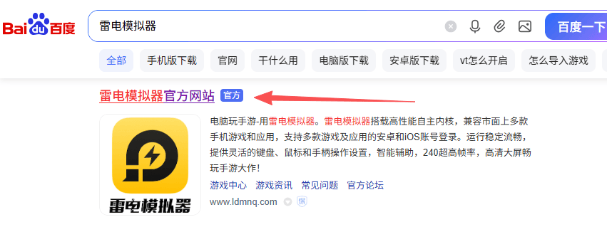 请注意,为了确保下载过程的安全可靠,请务必认准并访问雷电模拟器的官方网站,进入官网后,找到标有“下载”的入口,进入下载页面。