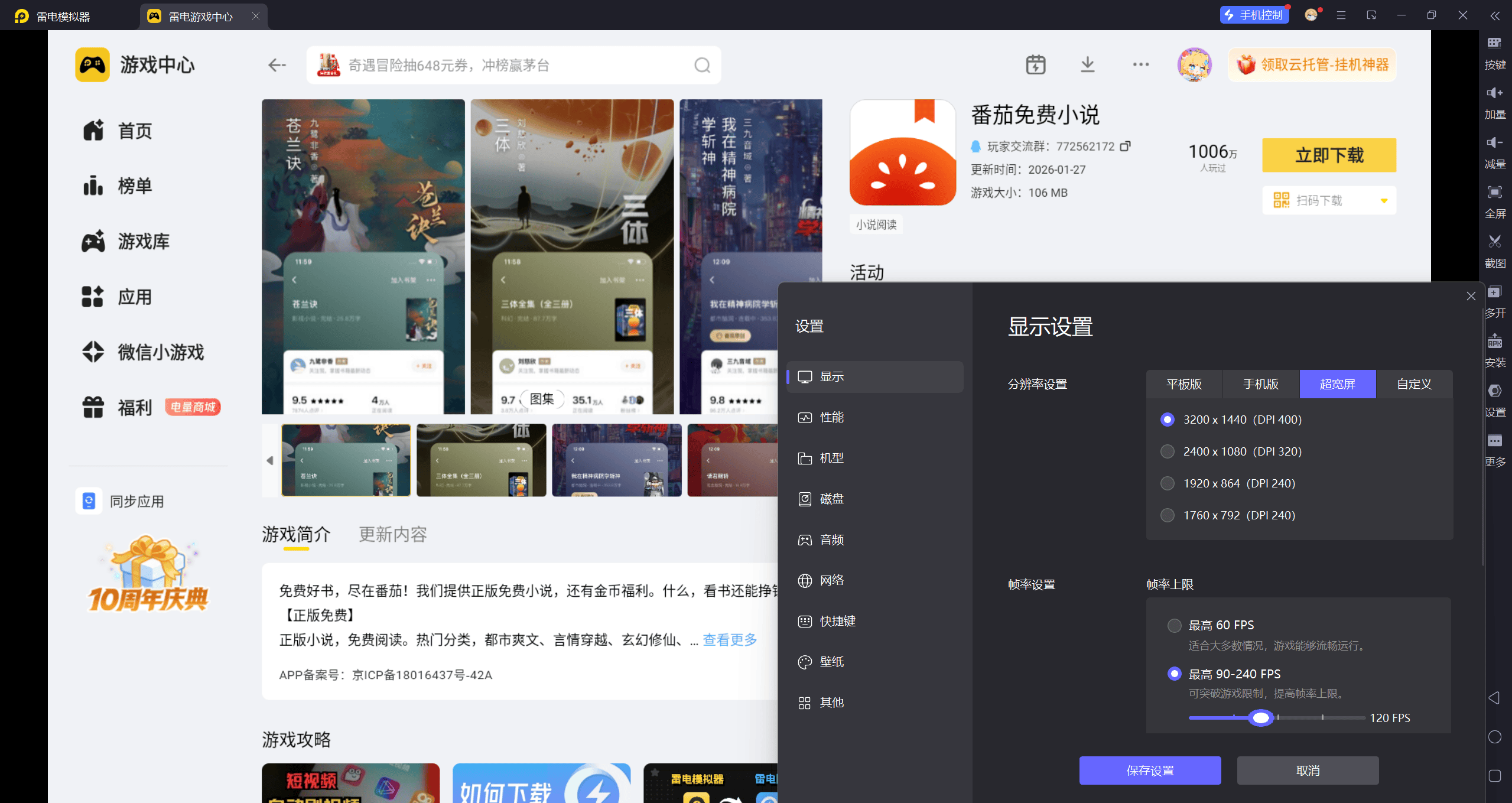 雷电模拟器支持高分辨率和高帧率模式,能完美适配您的电脑显示器。