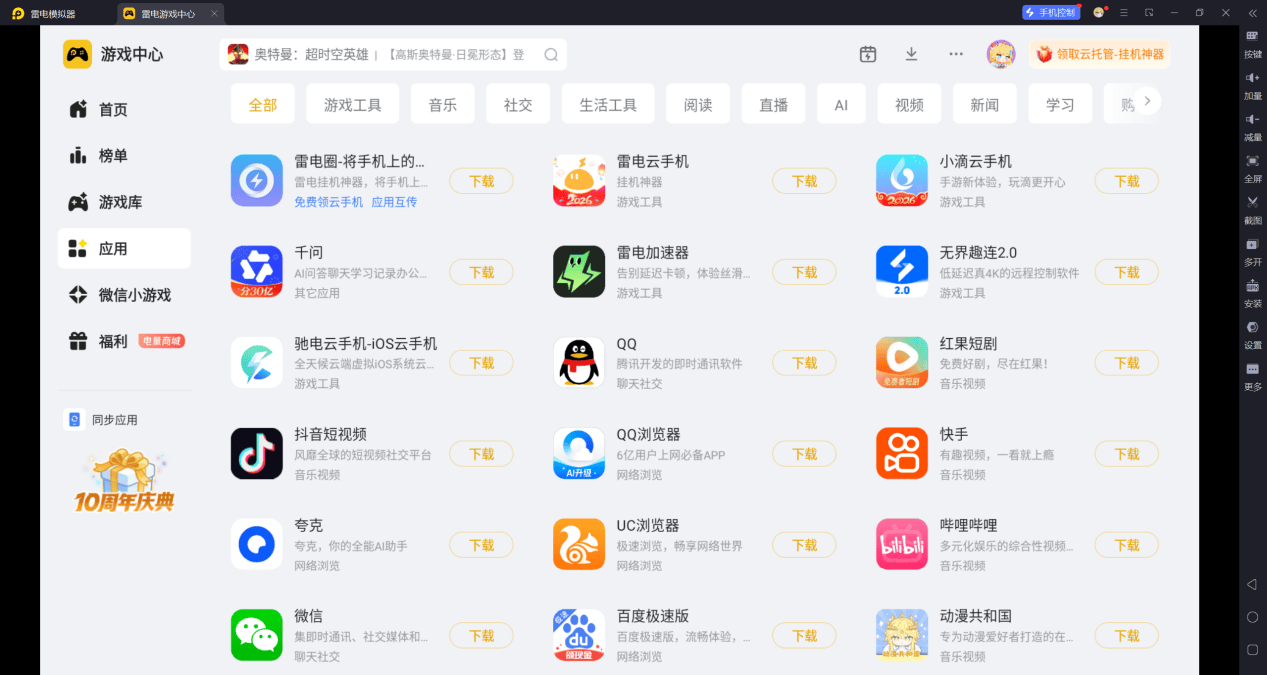 最新版雷电模拟器兼顾流畅性与实用性,上手简单、性能出众,能完美适配各类手机软件和游戏,赶紧下载使用,解锁电脑运行手机软件的便捷新体验吧。