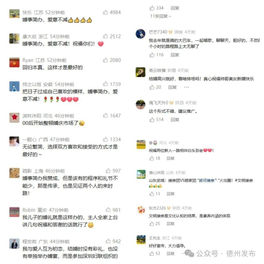 如今的宁津,公交迎亲、旅行结婚、极简婚礼蔚然成风,“零彩礼”和“三无婚礼”不断涌现。