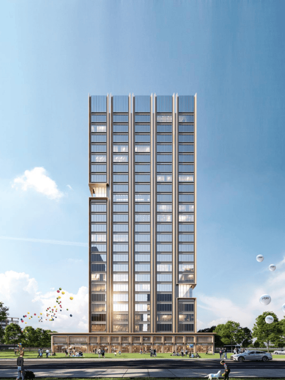 水晶灰中空low-E玻璃+铝板立面,墅级颜值租金领跑。