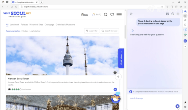 AI助手还能自动汇总、对比不同标签页的内容,在单一界面呈现关键信息,大幅降低信息筛选与整理的成本。