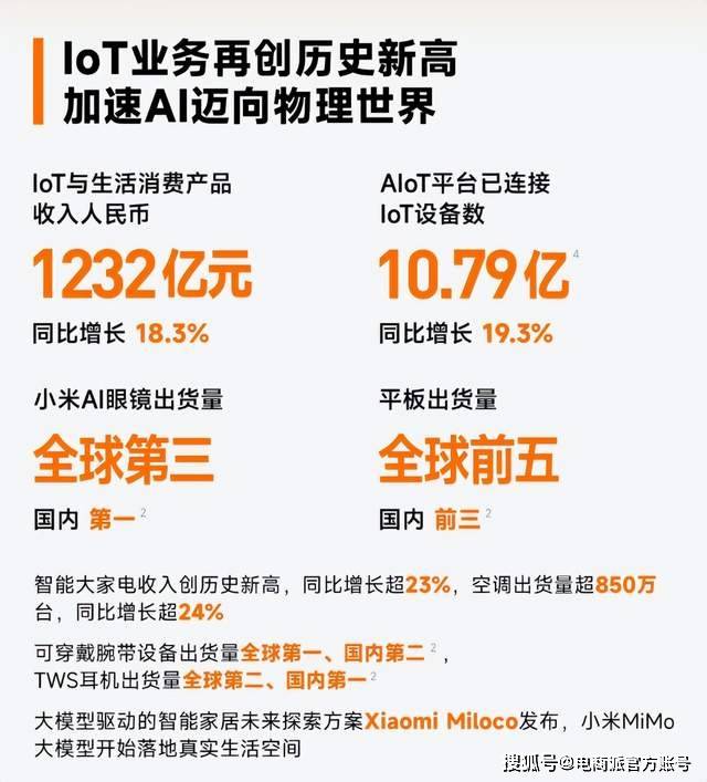 财报数据显示,IoT收入1232亿元,同比增长18.3%,境内境外收入均创历史新高,AIoT平台设备连接数突破10.79亿台。