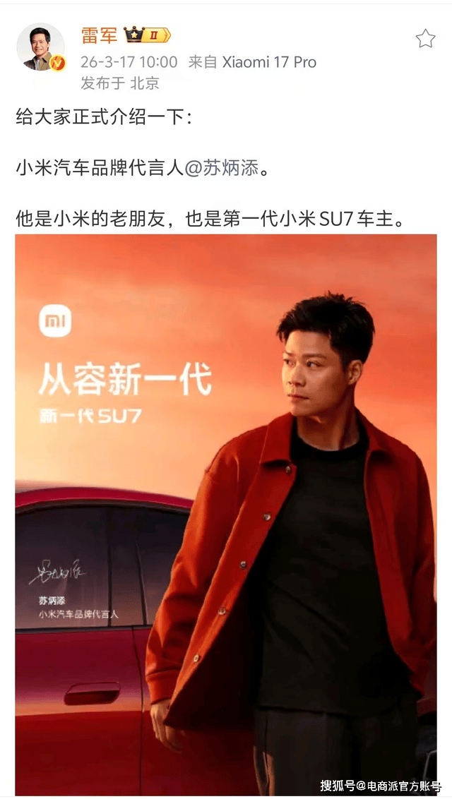 新一代小米SU7的大卖,离不开雷军的亲民服务与代言人的官宣。