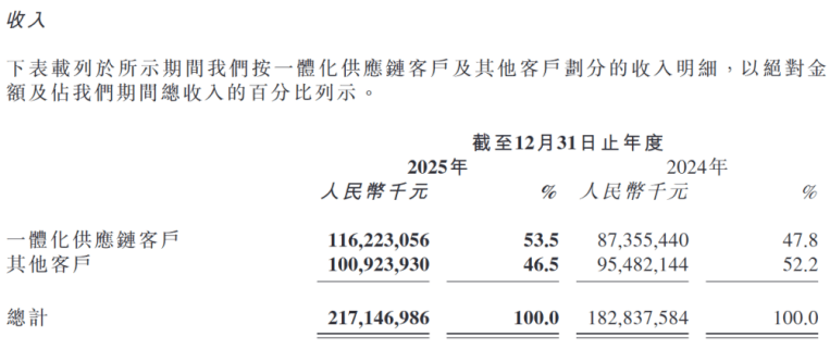 一体化供应链营收占比超50%