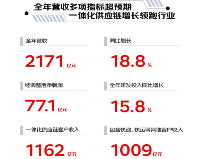 同期,包含快递、快运等在内的来自其他客户业务实现营收1009亿元,同比增长5.7%,收入占比为46.5%。