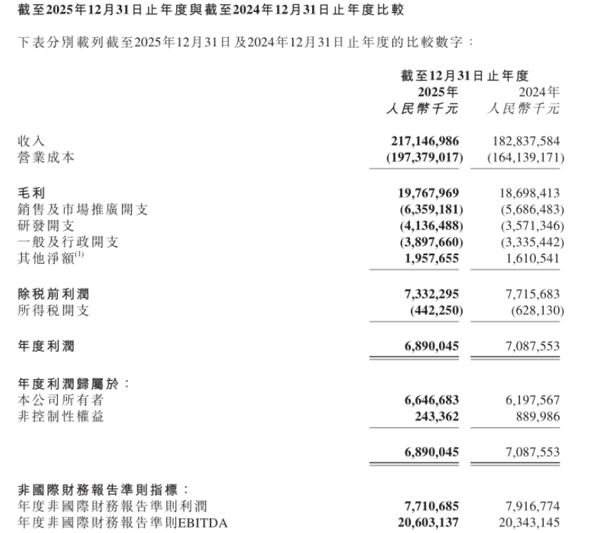 经调整净利润为77.1亿元,同比下滑2.6%。