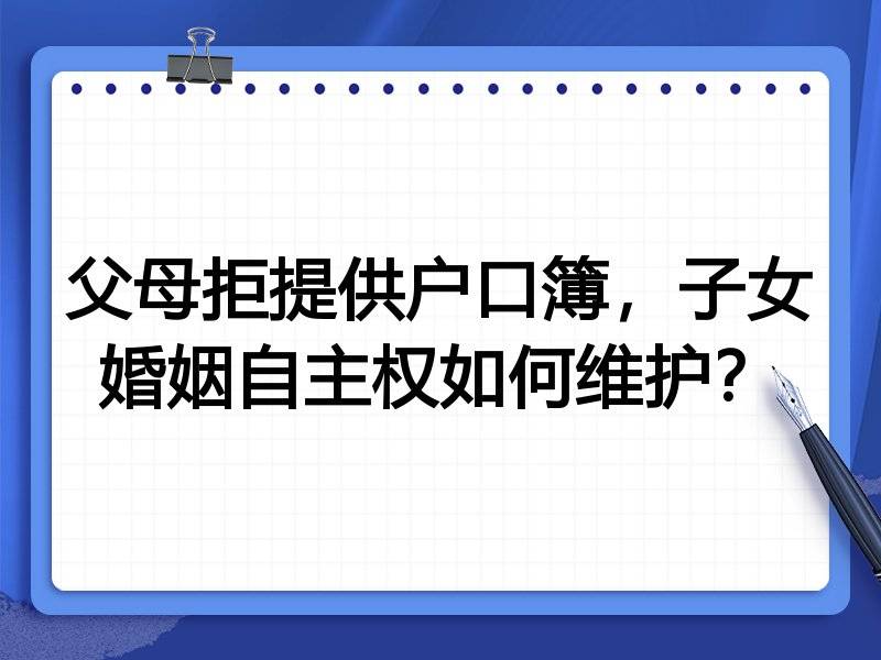 父母拒提供户口簿,子女婚姻自主权如何维护?