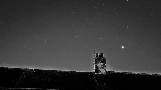 木星、双子座和疏散星团M44在屋顶上方,用我的谷歌Pixel6a在天文模式下拍摄,时间大约是凌晨1点。