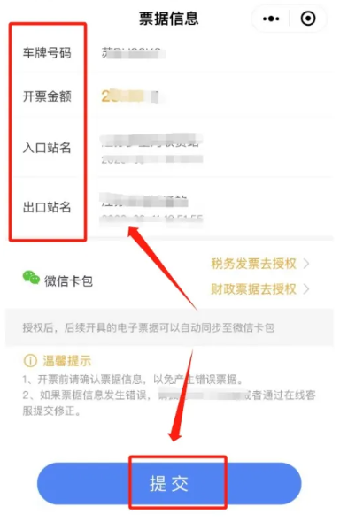 4、接着在票据信息的页面,输入下图所示的信息点击【提交】即可开电子发票。
