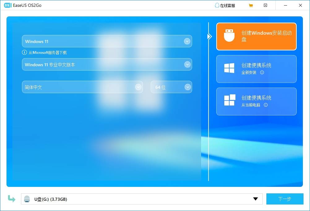除了微软提供的工具之外,其实还有第三方工具也可以帮助我们轻松制作Windows启动盘,比如EaseUS OS2Go,仅需几步简单的操作,即可轻松创建自己想要的启动盘。