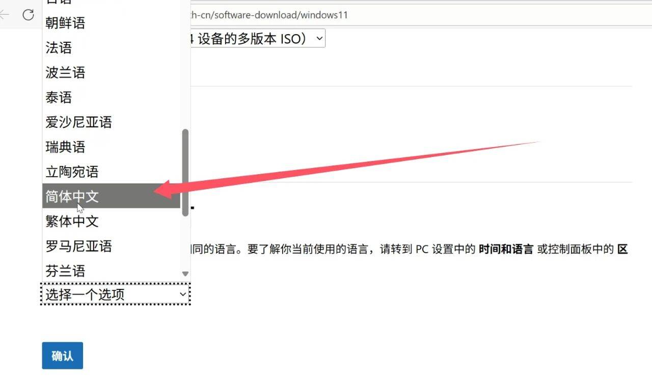 语言选择处选择简体中文,点击确认。