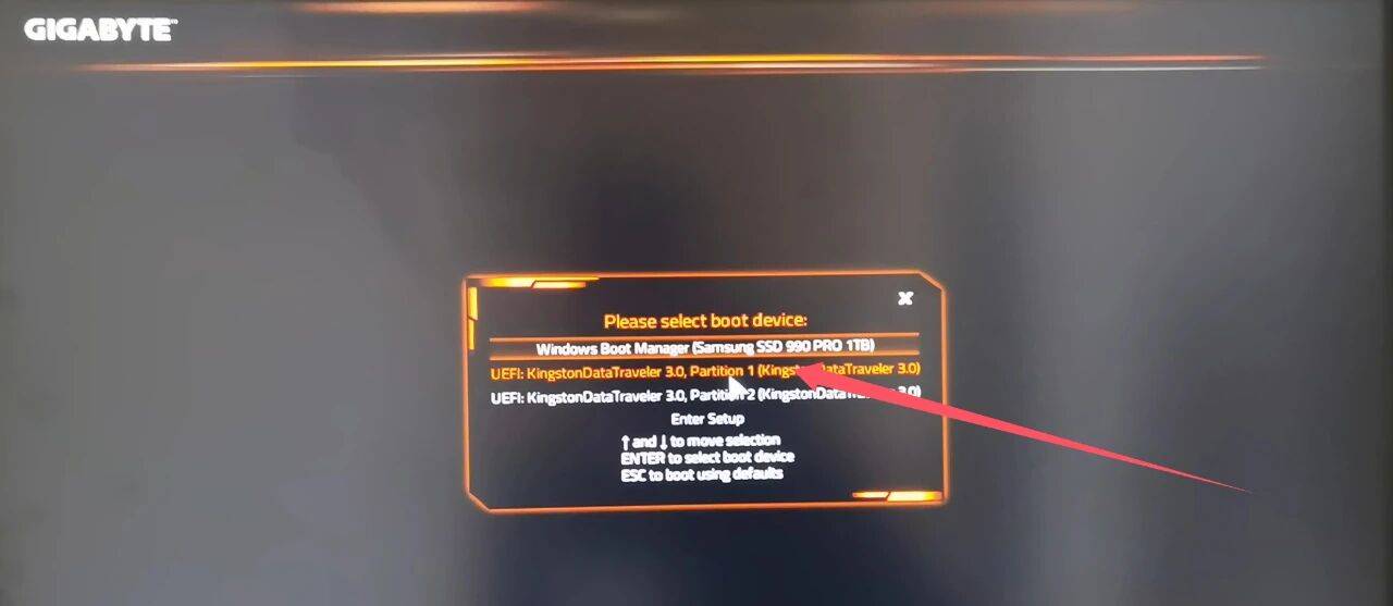 进入到启动盘选择界面,选择U盘启动。
