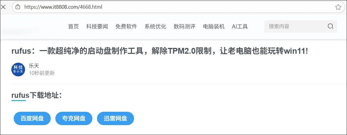 rufus是一款非常小巧且纯净的操作系统安装启动盘制作工具,通过它来安装电脑操作系统不仅不带任何第三方软件,保证原汁原味,而且还能绕过windows系统的TPM2.0检测,让老旧的电脑也能顺利安装最新的windows系统。