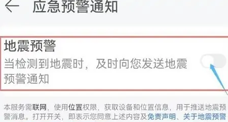 3、最后来到应急预警通知的页面,滑动【地震预警】后方的按钮即可打开地震预警。
