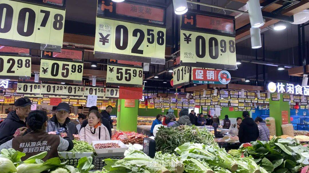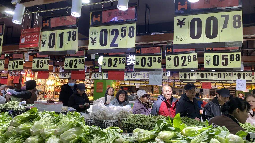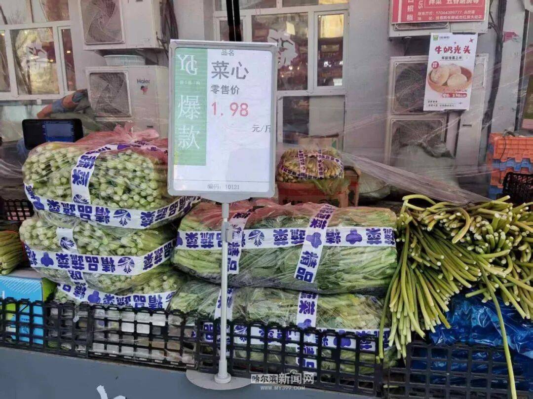 在哈尔滨道里区哈药路一家生鲜超市及户外生鲜摊位前,记者看到,蔬菜价格牌上的数字格外“暖心”,多款热门叶菜价格跌破1元/斤,成为市民选购的“爆款”单品。