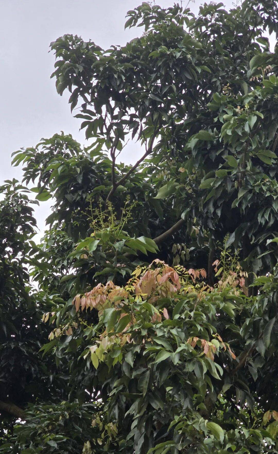 “荔枝树不开花它就长叶子,嫩叶先红后绿。