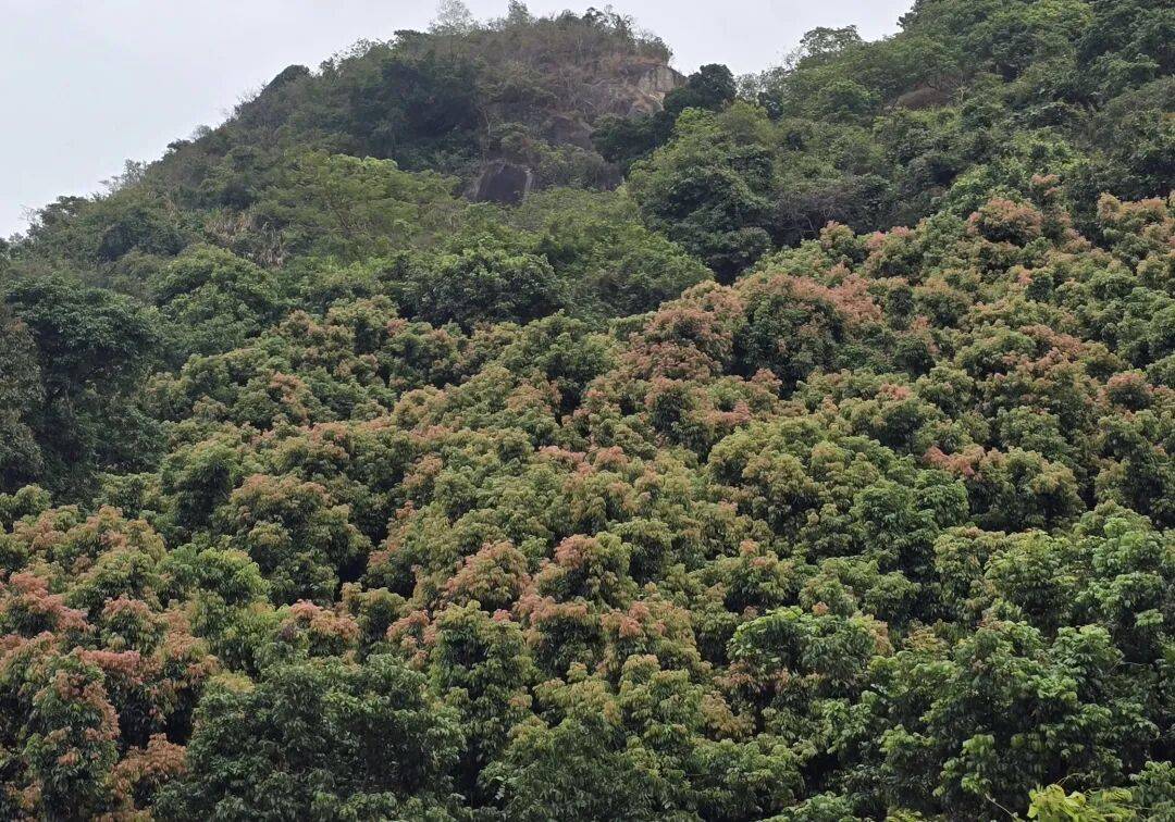 “往年漫山遍野的荔枝花穗,今年稀稀拉拉,连树顶都只剩零星几簇。