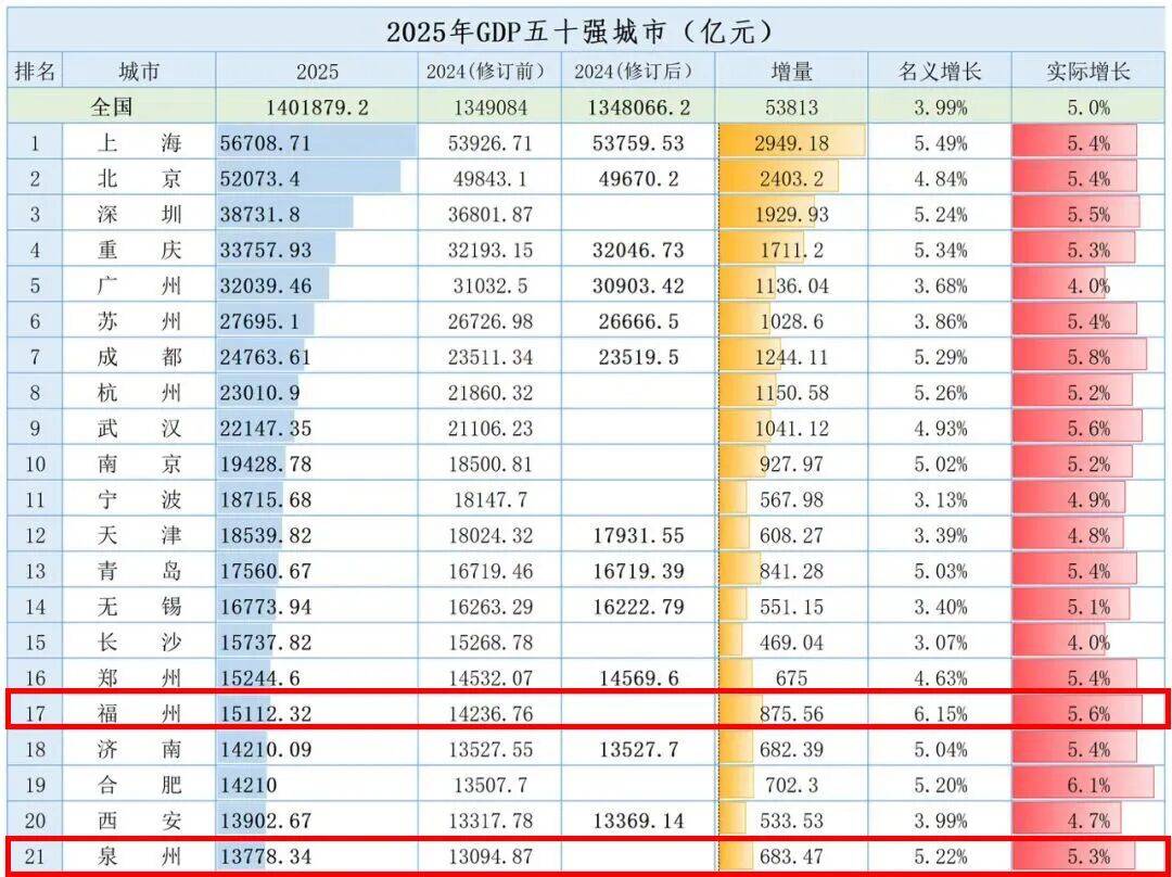 2020-2025年,福州的经济总量却以每年跨越一个千亿级台阶的速度迅速崛起。