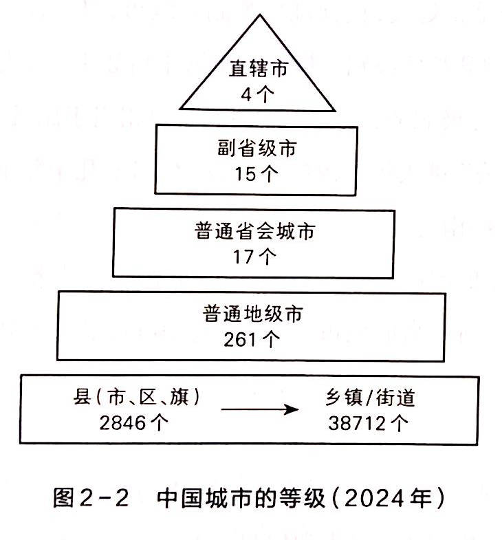 中国内地有大大小小几千座城市,它们构成了一个典型的城市等级金字塔(图2-2)。