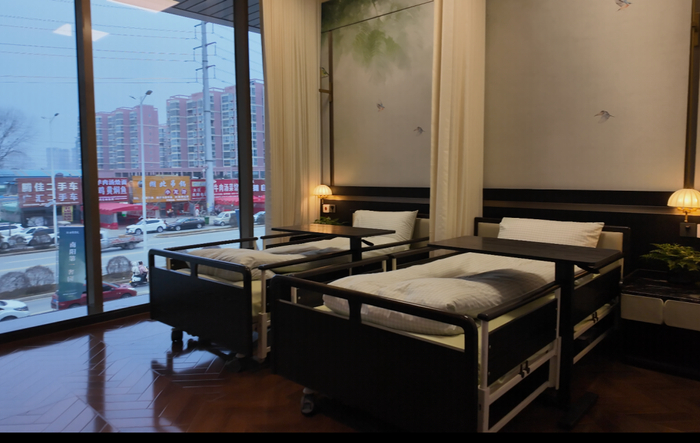 康养板块则是针对老人,有养老照护室、共享助浴室和各种适老设施,主要目的就是打造居家养老,让业主不出小区就能享受到康养理疗,而且也方便那些需要出差,但是家里又有老人需要看护的情况,就可以短暂在康养中心里暂住,会有专业的物业团队看护。