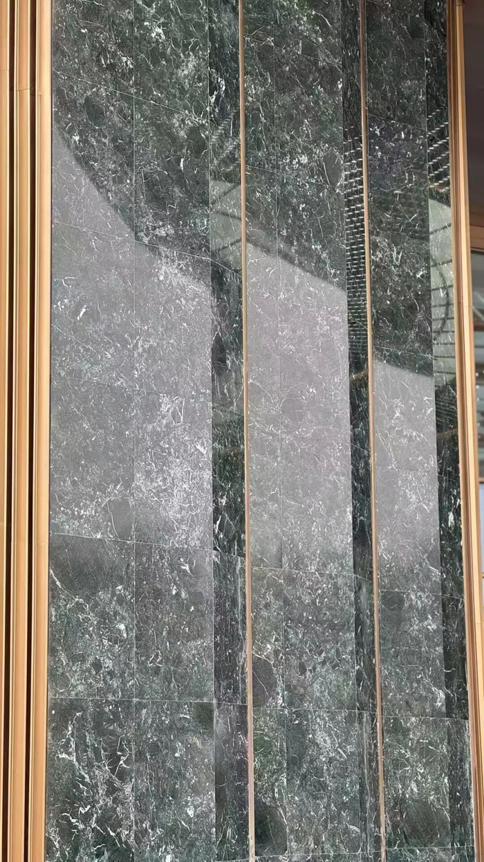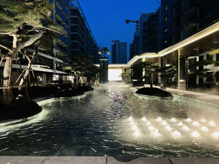 而且为了匹配一线豪宅的气质,无论是大门墙面的普拉达绿奢石还是水系的安哥拉黑石抑或是地面的石材,建控对不满意的地方多次砸换,力求完美。