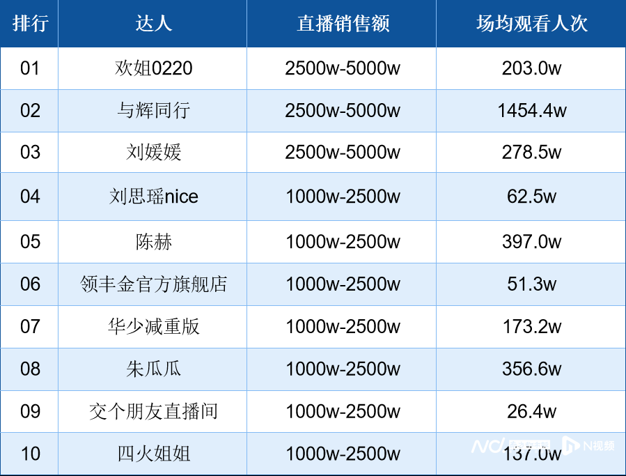 抖音3月11日直播带货日榜:欢姐0220、与辉同行、刘媛媛销售额均超2500万,分别位列第一至三位。