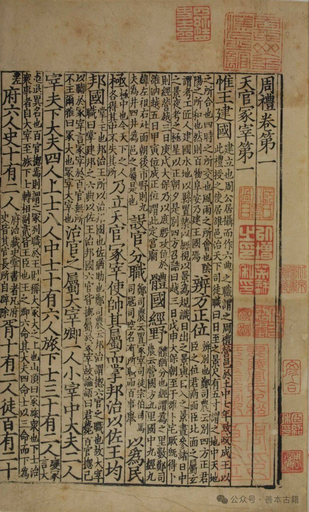 宋婺州唐宅刻本《周礼》十二卷,东汉郑玄注。