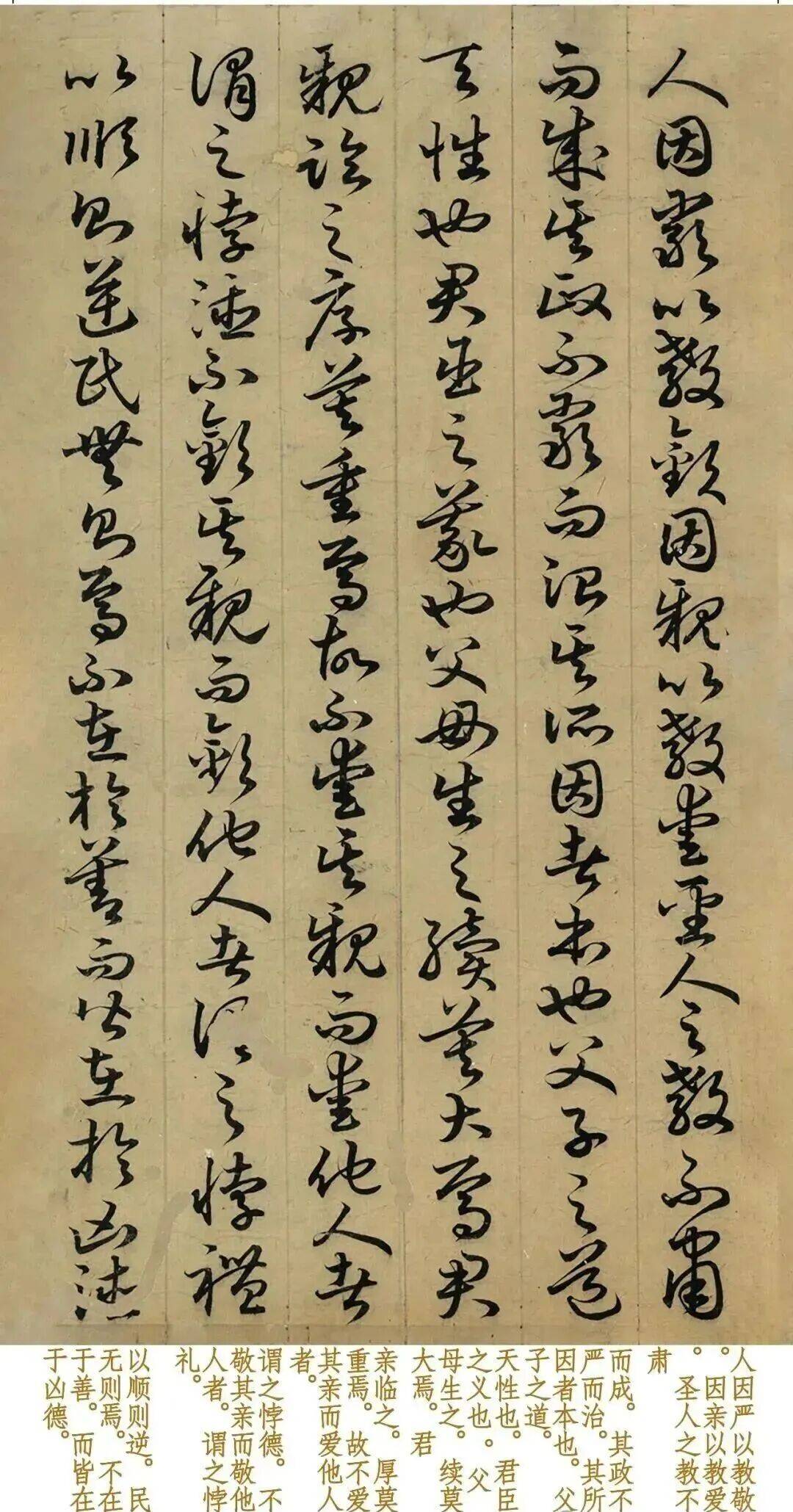 对于书法学习者而言,《孝经》是学习草书的绝佳范本:一是它笔法清晰可辨,虽 流畅但不失法度;