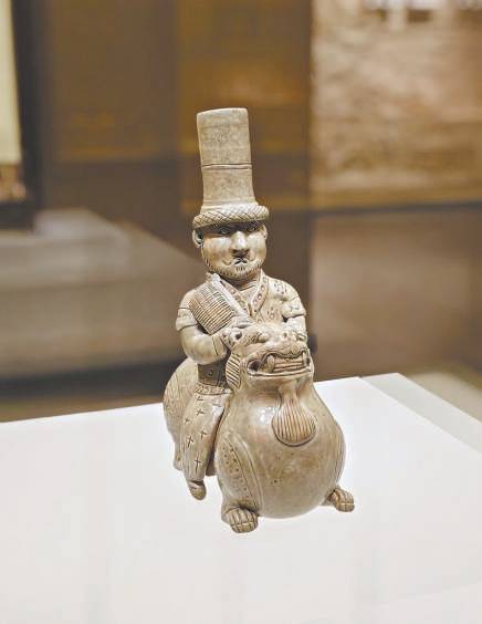 比如西晋时期的胡人骑狮器、北朝时期的青釉胡人驯狮俑、北齐时期黄釉模印胡人双狮纹扁壶等。