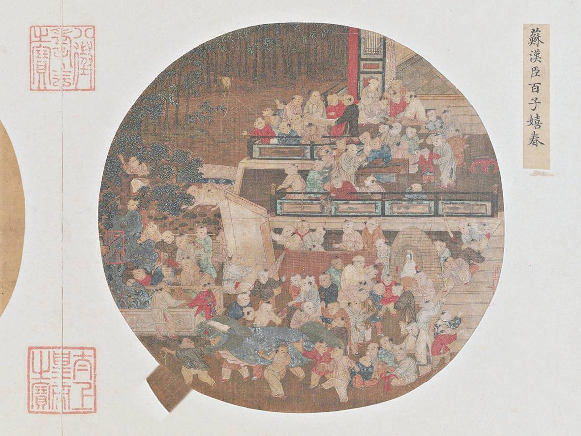 宋代时,舞狮表演走进民间,苏汉臣所绘《百子嬉春图》中也有狮子舞的场景。