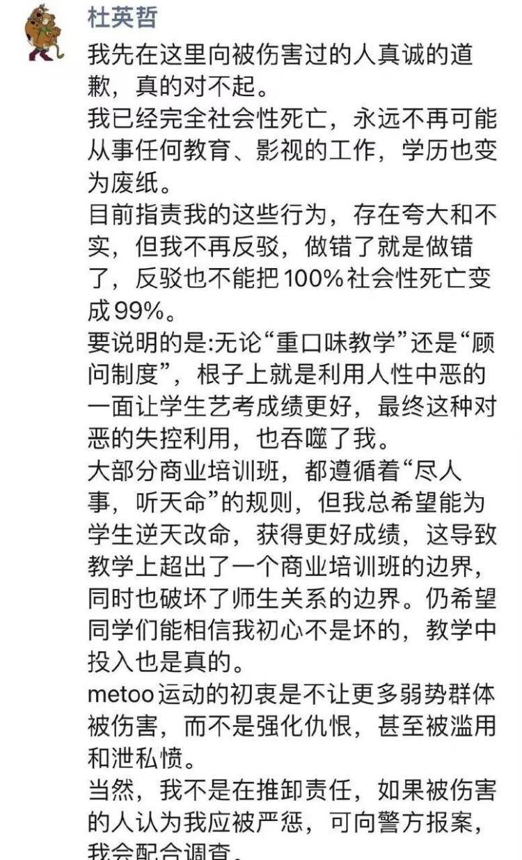 那场集体曝光,她也站了出来,自己以为的被迫“背叛”,原来是杜英哲涉嫌犯罪,而这种行为竟在艺考机构的年轻女孩中延续如此久。