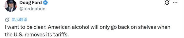会后,福特在社媒X发文重申,“只有当美国取消关税时,美国酒才能重新上架。