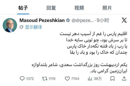 伊朗总统佩泽希齐扬22日在社交媒体上发文称,伊朗始终欢迎并将继续欢迎对话和协议,而违背承诺、实施封锁和威胁是进行真诚的谈判的主要障碍,世界已经看清美国无休止的虚伪言辞和自相矛盾的言行。