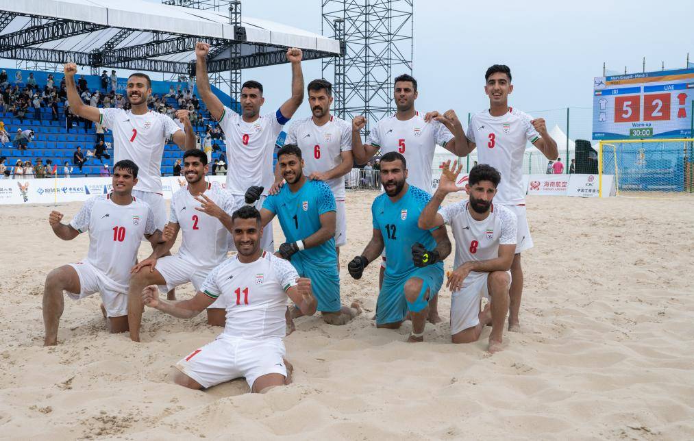 在23日进行的亚沙会沙滩足球小组赛中,伊朗队5:2战胜阿联酋队。