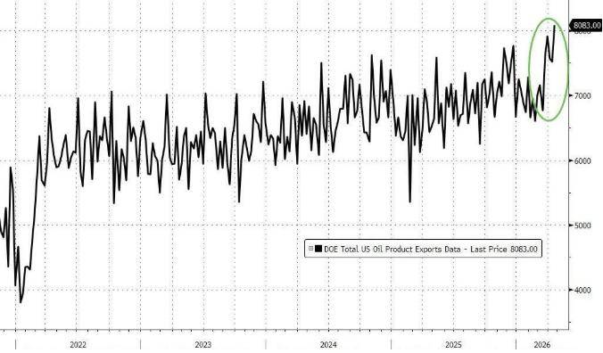 与此同时,美国石油出口飙升至历史新高1270万桶/日,5月出口预计更高;