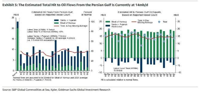 此外,据此前数据:波斯湾整体石油外运(含管道改道)仅930万桶/日,为正常水平的40%。