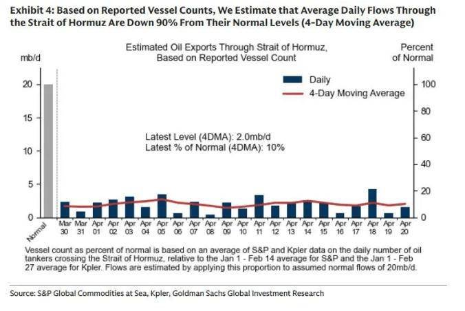 霍尔木兹海峡石油日均通行量仅为正常水平10%,约200万桶(4日移动均值)。