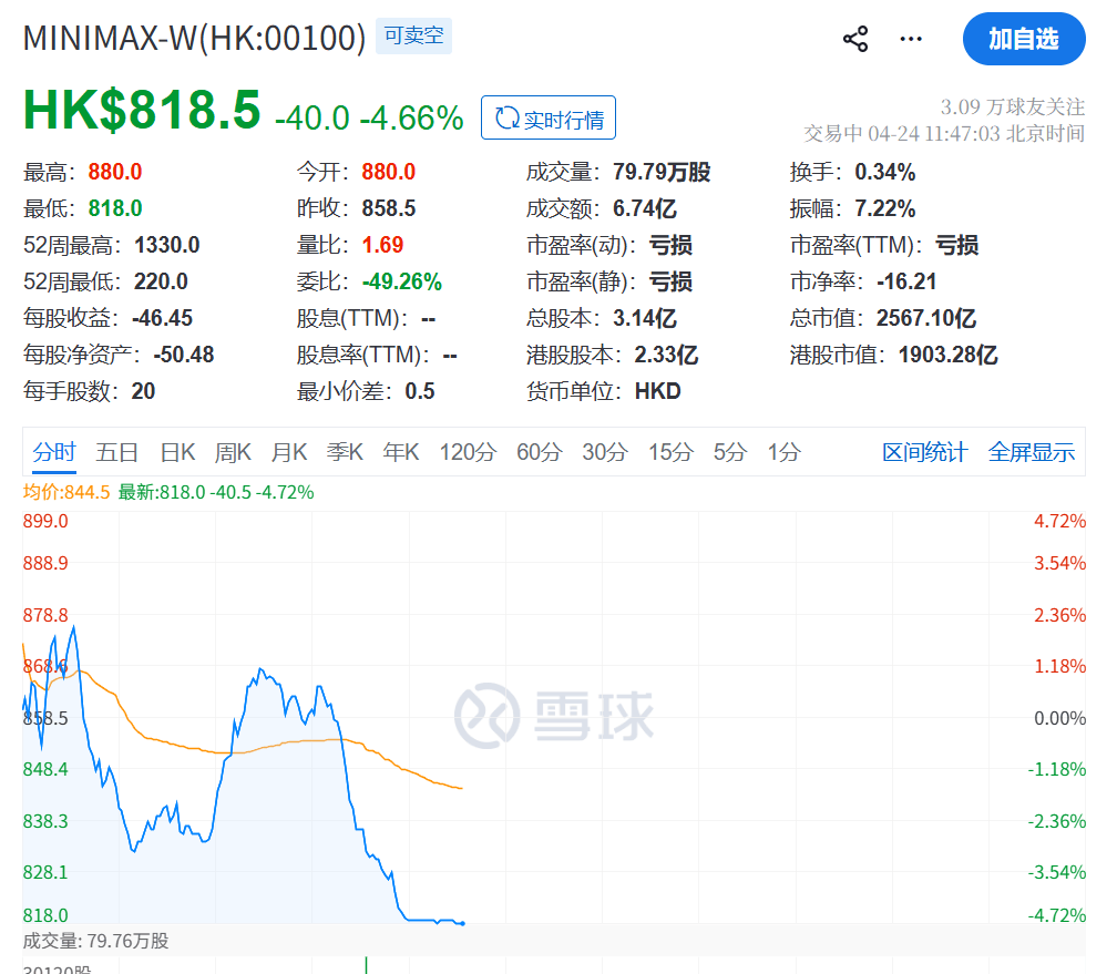 而DeepSeek的竞争对手——智谱、Minimax在V4发布后跌势扩大,分别跌6.8%和3.9%。
